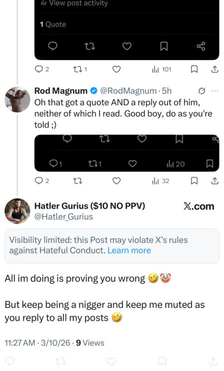 Hatler didn’t waste any time going full Plantation owner on poor Rod, an African American. I guess we should be grateful Black History Month is over, but still, the N-word Hatler? Hatler’s hatred for African Americans only means one thing: he’s a Democrat. Hatler probably wishes he could buy Rod Magnum and put him to work picking cotton or, even worse, force him into a life of Penis Pic Photoshopping. Fortunately for Rod, Trump has outlawed all Slave trading.